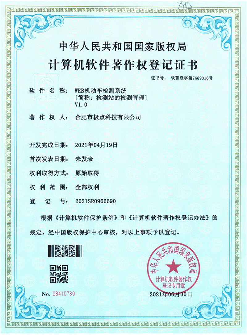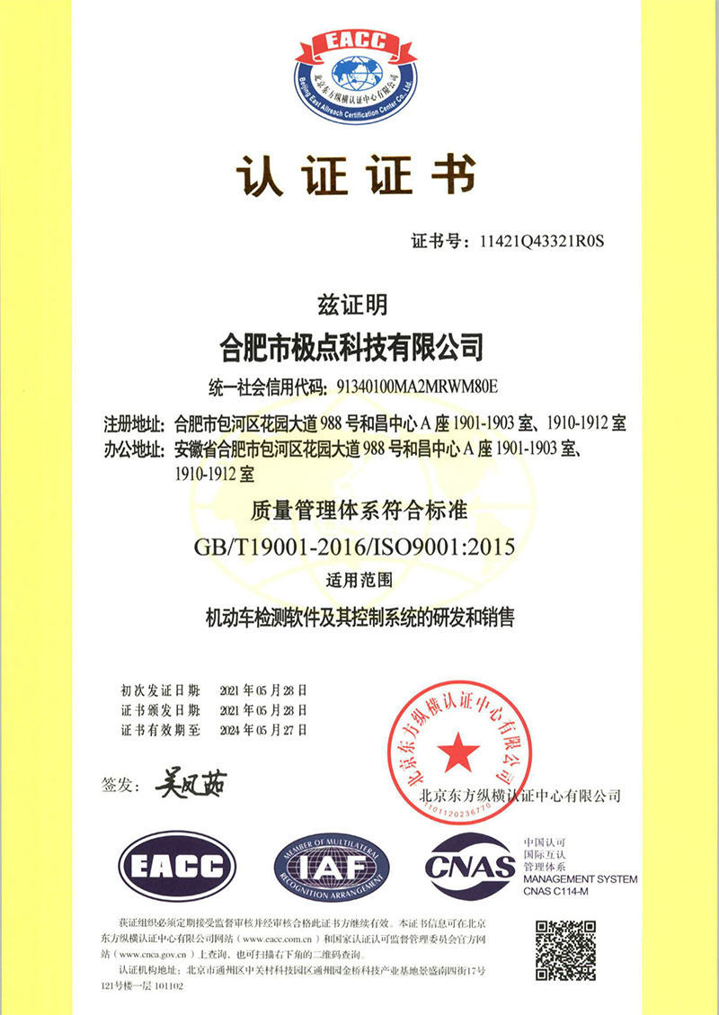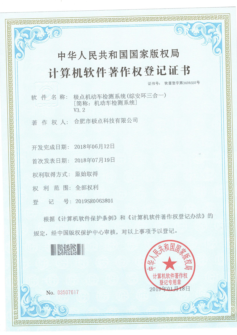 合肥市極點(diǎn)科技有限公司位于科教名城合肥市。是一家專注于機(jī)動(dòng)車(chē)檢測(cè)系統(tǒng)的研發(fā)與銷(xiāo)售的高科技公司。產(chǎn)品涵蓋機(jī)動(dòng)車(chē)檢測(cè)設(shè)備、圖像識(shí)別、人工智能、環(huán)保檢測(cè)、工業(yè)自動(dòng)化等方面,廣泛應(yīng)用于公安、環(huán)保、交通、教育、汽車(chē)生產(chǎn)與維護(hù)等領(lǐng)域。公司產(chǎn)品擁有多項(xiàng)發(fā)明專利和實(shí)用新型專利以及數(shù)十項(xiàng)軟件著作權(quán)。